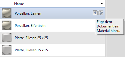 Um dem aktuellen Projekt ein Material hinzuzufügen, suchen Sie dieses zuerst in einer bestehenden Bibliothek. Anschließend haben Sie folgende Möglichkeiten: