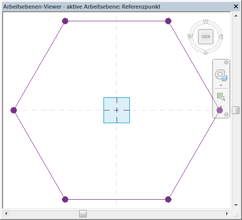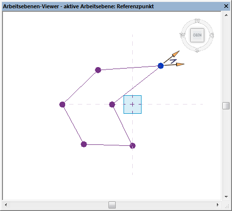 Der Arbeitsebenen-Viewer ist in allen Modellansichten in der Projektumgebung verfügbar. Die Standardausrichtung ist die aktive Arbeitsebene der zuletzt aktiven Ansicht.