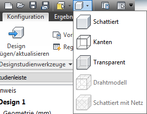 Um das Modell als Umriss oder transparent anzuzeigen, wählen Sie eine Option aus dem Menü Visueller Stil im Schnellzugriff-Werkzeugkasten: