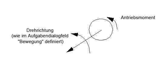 Beispiele für Antriebsmomente sind elektromagnetische und andere Körperdrehmomente sowie Drehmomente, die durch von der Analysegeometrie nicht berücksichtigte Objekte ausgeübt werden. Das Antriebsmoment wirkt in dieselbe Richtung wie die Bewegungsrichtung (wie sie im Taskdialogfeld "Bewegung" festgelegt wurde).