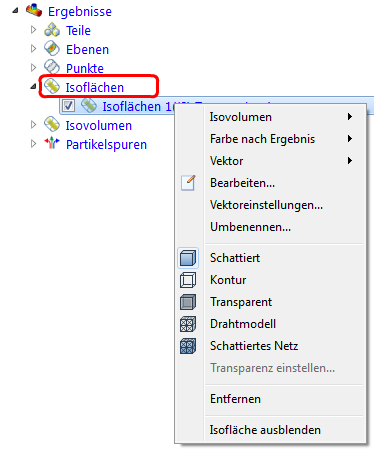 Das Kontextmenü bietet einen umfassenden Satz von Steuerelementen für Isoflächen: