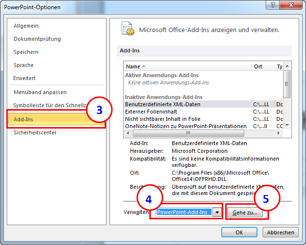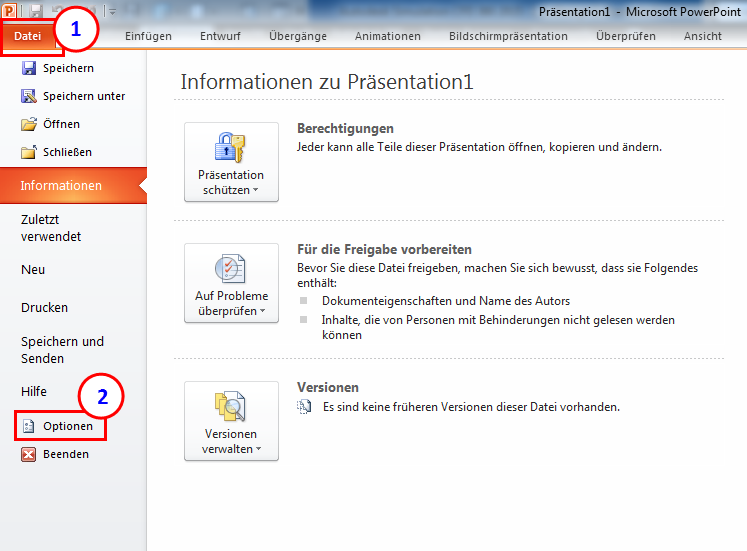 Wenn die Schaltfläche nicht angezeigt wird, senken Sie die PowerPoint-Sicherheitseinstellungen: