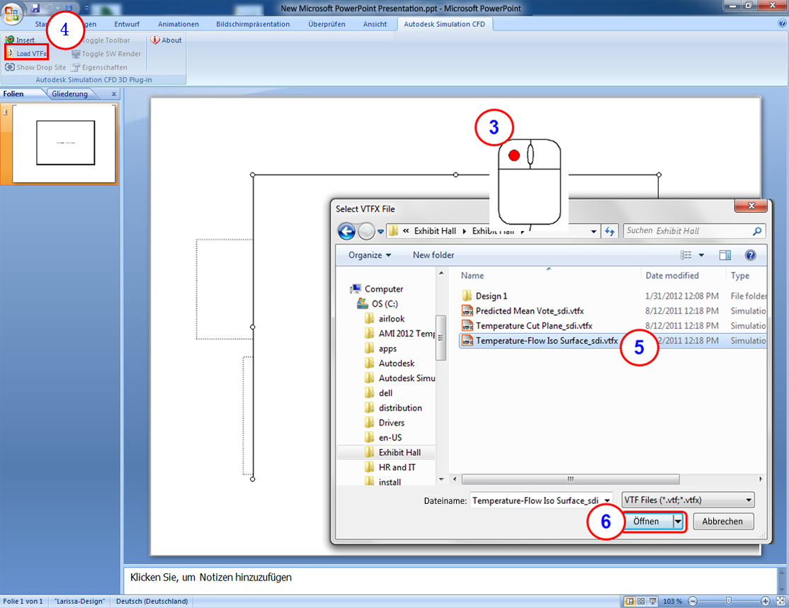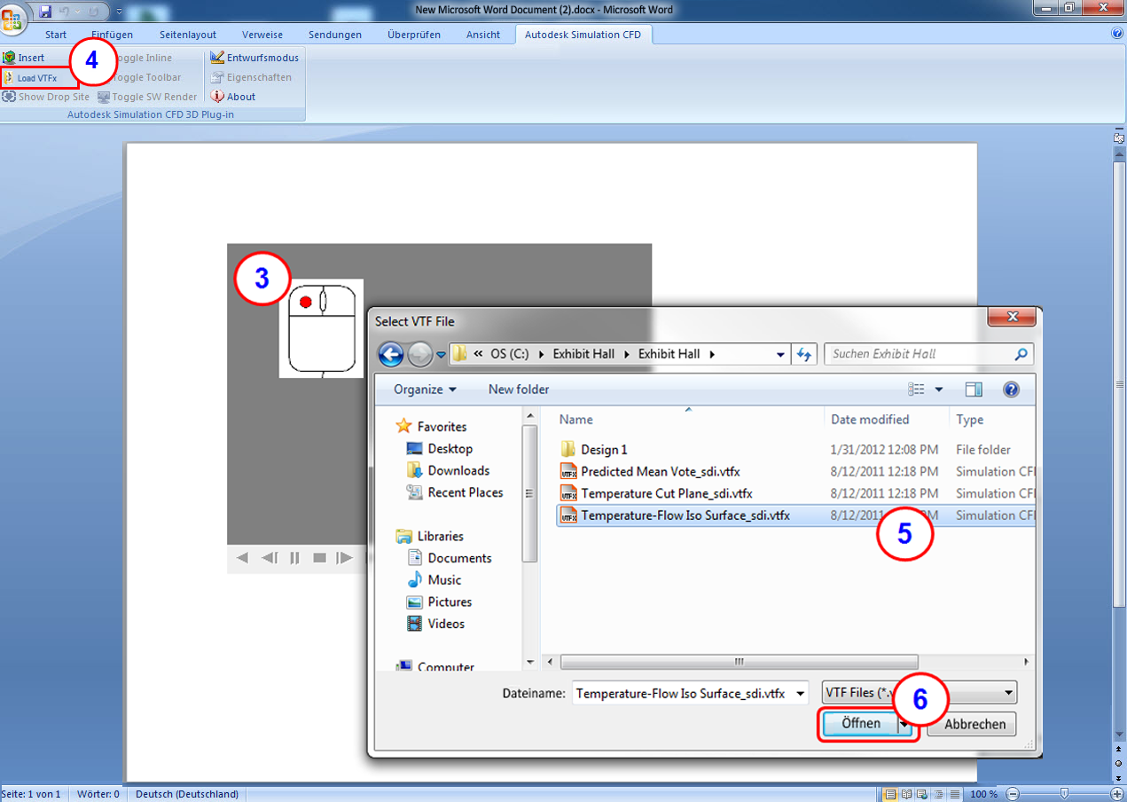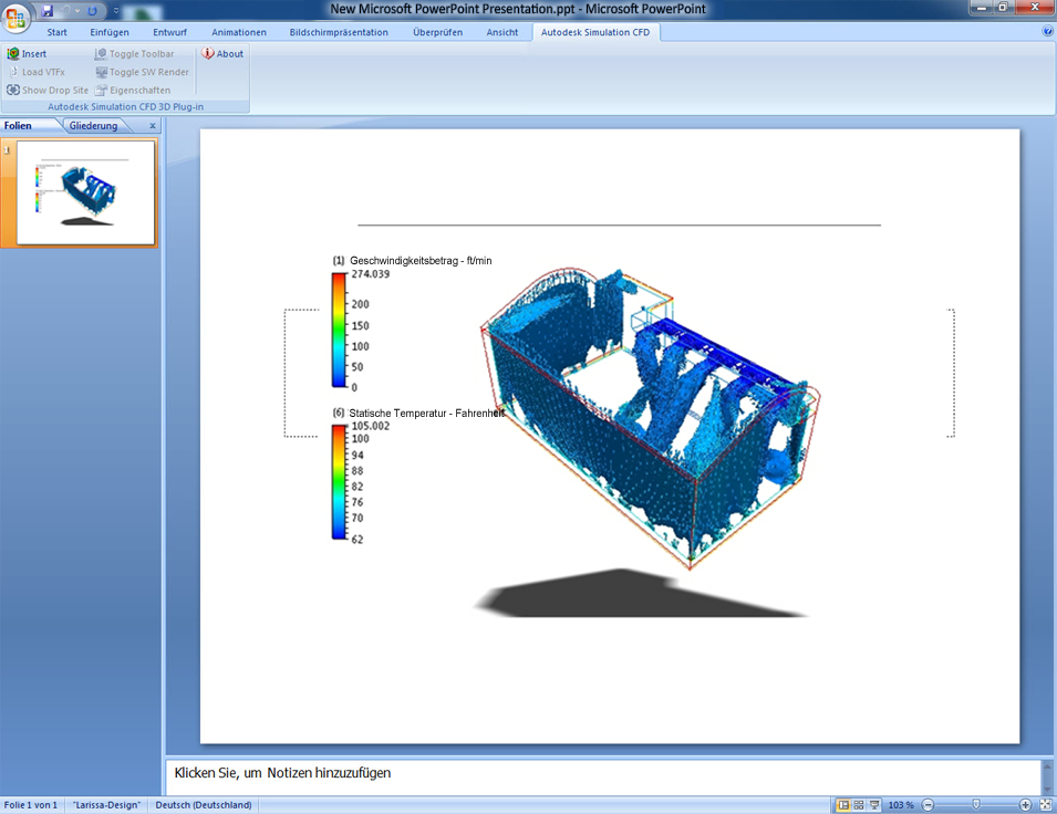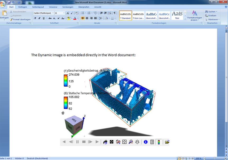 Der CFD 3D Viewer hat Verbindungen zu Microsoft® PowerPoint und Microsoft® Word. Dadurch können Sie dynamische Bilder in Ihre Office-Präsentationen und -Dokumente integrieren.