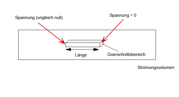 Alternativ können Sie eine Potentialdifferenz (Spannungsdifferenz) auf dem Gerät anwenden, indem Sie die Spannung ungleich null an einem Ende und einen Nullwert für die Spannung am anderen angeben. In diesem Fall wird die Stromrandbedinung nicht berücksichtigt.