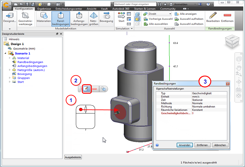 1. Klicken Sie mit der rechten Maustaste auf Randbedingungen in der Designstudienleiste.