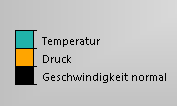 Ein Farbstreifen wird auf jedem Objekt mit einer zugewiesenen Randbedingung abgebildet. Jeder Randbedingungstyp weist einen anderen Farbstreifen auf. Eine Legende in der unteren linken Ecke des Grafikfensters zeigt dies entsprechend für die auf das Modell angewendeten Bedingungen an: