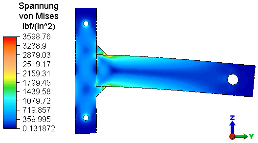 Von Mises. Der maximale Wert beträgt ca. 3,600 psi.