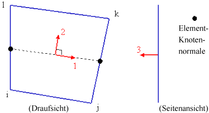 Abbildung 3: Lokale Achsen 1 und 2 für Schalenelemente