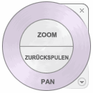 Mit diesem Rad können Sie grundlegende 2D-Navigationswerkzeuge aufrufen. Dieses Rad ist besonders hilfreich, wenn Sie kein Zeigegerät mit Rollrad haben. Das Rad enthält die Werkzeuge Pan und Zoom.