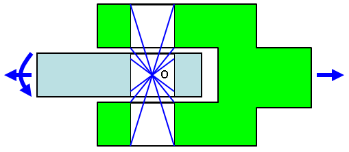 Vergleichen Sie das Punktgelenk mit dem Bolzengelenk. Die Stäbe sind hier nicht mit zwei Achsenendpunkten (A und B in Abbildung 1), sondern mit einem einzigen Mittelpunkt (O in Abbildung 2) verbunden. Da sich die Enden der Stabelemente wie Kugelgelenk-Verbindungen verhalten, können die Stäbe und die von ihnen verbundenen Körper in jeder Richtung um den Punkt O rotieren. Sie können jedoch nicht relativ zueinander verschoben werden. Auf diese Weise wird ein Punktgelenk oder eine Art Kugelgelenk simuliert.