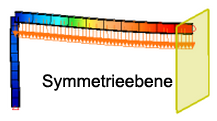 ![]() (a) Das komplette analysierte Modell. Der Analyst konnte die Symmetrie nutzen und analysierte die Hälfte des Modells. |