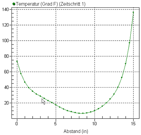 Außerdem kann das Ergebnis entlang einer Linie oder eines Pfads von Knoten durch das Modell dargestellt werden. (siehe Abbildung 2) So kann z. B. die Temperatur durch die Dicke einer feuerfesten Wand dargestellt werden. Der Abstand zwischen den ausgewählten Knoten ist der Wert auf der horizontalen Achse.