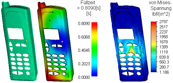 - Restspannung aus Moldflow Adviser-Analysen. Bei den Bauteilen wird davon ausgegangen, dass mit einer Ausgangsspannung von 0 begonnen wird. Moldflow Insight-Ergebnisse enthalten Restspannungen.