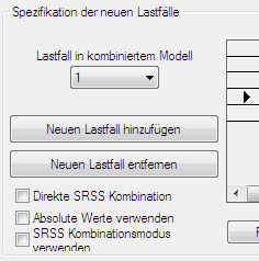 Die Option SRSS Kombinationsmodus verwenden ist nicht verfügbar, wenn für das kombinierte Modell mehr als ein ausgegebener Lastfall angegeben wird.
