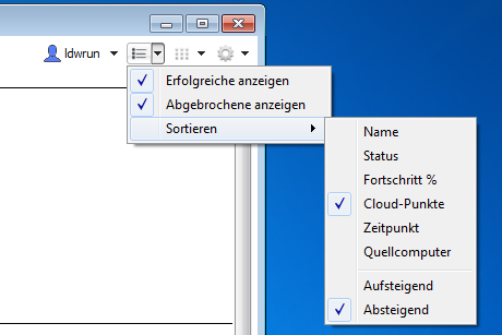 Um die Sortierreihenfolge der Aufträge umzukehren, wählen Sie entweder Aufsteigend oder Absteigend.