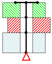 Schraube. Drei Arten von Schrauben können erstellt werden, wie in den folgenden Abbildungen gezeigt. In der obersten Abbildungsreihe wird die physische Verbindung gezeigt und in der unteren Reihe die FEM-Entsprechung; die dicken Linien sind hierbei die vom Schraubverbindungsassistenten erstellten Balkenelemente.