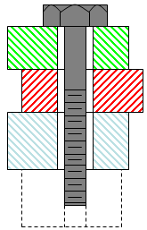- Entlang der Lochachse wird eine Linie gezeichnet; den Anfang bildet der Punkt, an dem sie die Schraubenkopf-Kontaktfläche berührt, das Ende der Punkt, an dem sie auf die gegenüberliegenden Flächen trifft. Diese Linie wird als Schraubenlinie bezeichnet.