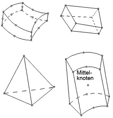 Abbildung 1: Typische 3D-Kontinuumselemente, die vom allgemeinen Element mit 21 Knoten abgeleitet wurden