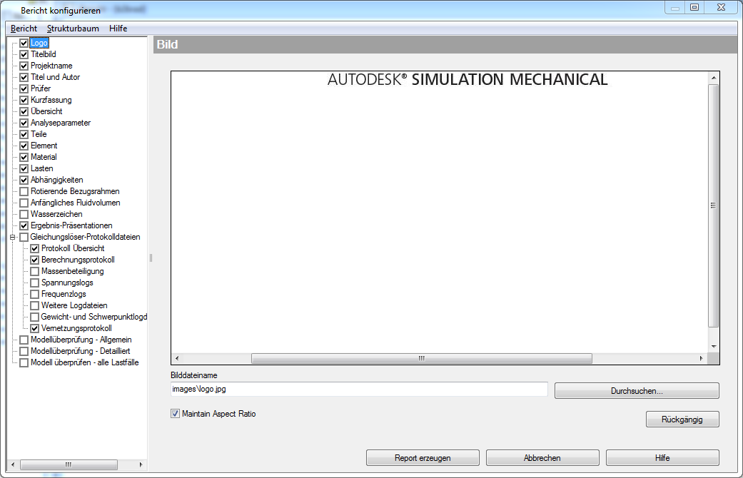 Abbildung 1: Dialogfeld Bericht konfigurieren