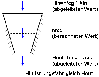 Der berechnete Wert für den Wärmestrom am Schwerpunkt (hfcg) wird verwendet, um den Wärmestrom der Fläche (H) wie folgt zu berechnen: