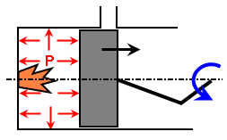 Abbildung 2: Zweitaktkolben Obwohl die Position des Kolben in beiden Fällen gleich ist, ist der Druck P unterschiedlich. |