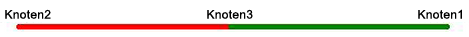 Damit das Schieberelement ordnungsgemäß funktionieren kann, müssen zwei Linien an einem Knoten miteinander verbunden sein. Die Linien sollten in einem Winkel von 180 Grad zueinander liegen (sodass sie eine gerade Linie bilden, wenn sie miteinander verbunden werden). Der Knoten, der die beiden Linien miteinander verbindet, wird als Knoten 3 bezeichnet. Knoten 1 und Knoten 2 werden vom Programm bestimmt, wenn sie nicht definiert werden. Sie können Knoten 1 oder Knoten 2 mithilfe der Flächennummer der beiden Linien definieren. Knoten 1 ist der Knoten auf der Linie mit der niedrigeren Flächennummer und nicht der Knoten, durch den die beiden Linien miteinander verbunden werden (siehe unten - Fläche 1 ist grün und Fläche 2 rot dargestellt).