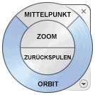 Mit SteeringWheels (Räder) können Sie Zeit sparen, da zahlreiche der häufig verwendeten Navigationswerkzeuge in einer Oberfläche zusammengefasst sind. Räder sind aufgabenspezifische Werkzeuge, mit denen Sie navigieren und ein Modell in verschiedenen Ansichten ausrichten können.