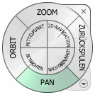 SteeringWheels sind Verfolgungsmenüs (die Ihrem Cursor folgen), mit denen Sie verschiedene 2D- und 3D-Navigationswerkzeuge von einem einzigen Werkzeug aus aufrufen können.