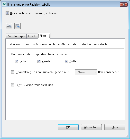 Auf der Registerkarte Filter können Sie die Daten, die in der Revisionstabelle angezeigt werden, weiter optimieren, indem Sie Revisionsebenenfilter anwenden. ![]() |