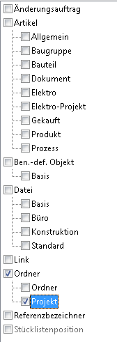 Eine benutzerdefinierte Eigenschaft kann auch bestimmten Element-Unterklassen zugeordnet werden. Eine benutzerdefinierte Eigenschaft kann beispielsweise so erstellt werden, dass diese nur von Ordnern des Typs Projekt verwendet werden kann.