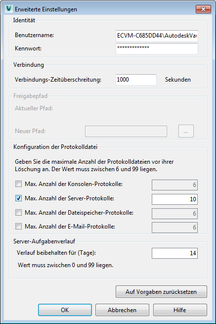 Konfigurieren Sie die Anzahl der Console-, Server- und E-Mail-Protokolle auf dem Tresor-Server.