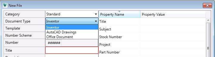 Wenn ein Benutzer eine Option aus der Liste Dokumenttyp auswählt und auf OK klickt, sucht die Funktion Neue Data Standard-Datei in dem mit diesem Dokumenttyp verknüpften Vault-Ordnerpfad nach einer Vorlage. Die Vorlage wird zum Generieren der neuen Datei verwendet.