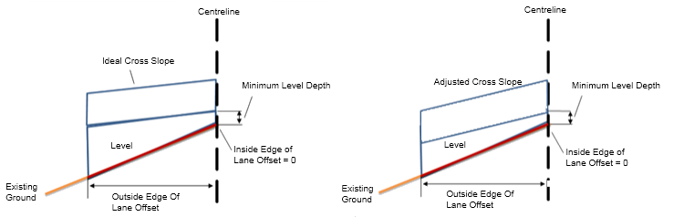 | Slope Tolerance | The amount that the overlay crossfall is allowed to vary from the existing ground crossfall or the ideal crossfall. | Numeric, positive | 0.50% |