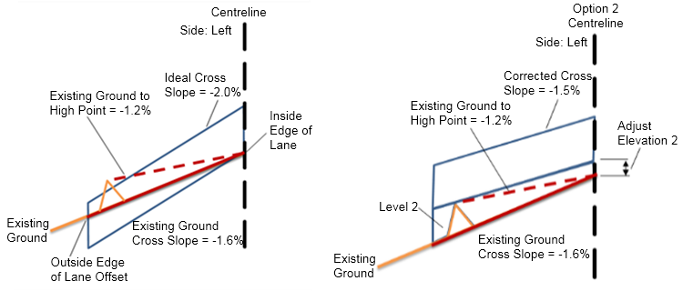 Case 1-2: Ideal Crossfall is greater than Existing Ground Crossfall