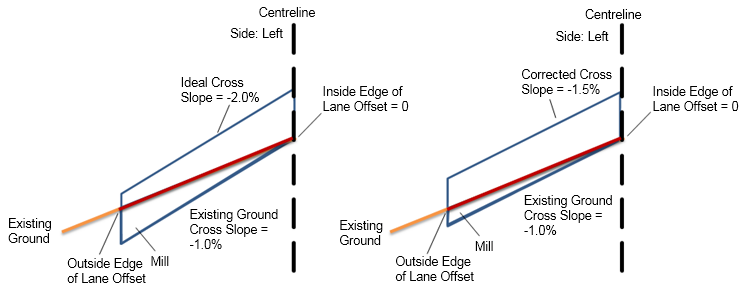 | Corrected Crossfall | Corrected Crossfall will be set between -1.5% and -2.5% crossfall |