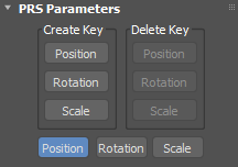 The buttons in the Create Key and Delete Key groups on the PRS Parameters rollout let you create or delete a transform key at the current frame. These buttons become active or inactive depending on the existence of a key type at the current frame.