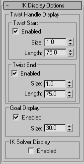The options on this rollout set the display of twist manipulators and the IK chain object.