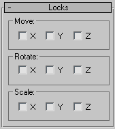 - Turn on any axis in the Move, Rotate, or Scale group box to lock that axis. For example, if Rotate