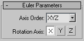 The Euler parameters rollout is displayed when Rotation is selected in the PRS Parameters rollout.