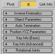 Note: The rollouts for the HI IK and IK Limb solvers are not available while IK is chosen in the Hierarchy panel. Most controls for these solvers are found on the Motion panel.