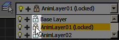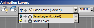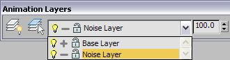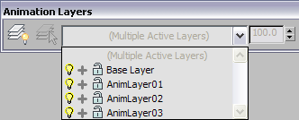 The Animation Layers feature lets you combine multiple animation tracks on the same object. You can store different animations in layers as you try them out, turning them on or off to your liking and merging them with weighting settings. In most cases, the best way to use this feature is via commands on the Animation Layers toolbar, covered in the Interface section in this topic.