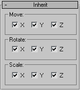 The Inherit rollout limits which transforms a child inherits. It constrains the links between a selected object and its parent for any axis of position, rotation, or scale.