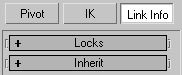 This part of the Hierarchy panel contains two rollouts. The Locks rollout has controls to restrict the movement of objects in a particular axis. The Inherit rollout has controls to limit the transforms that a child inherits from its parent object.