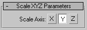 After applying the Scale XYZ controller to an object, Scale XYZ parameters appear in a rollout on the Motion panel.