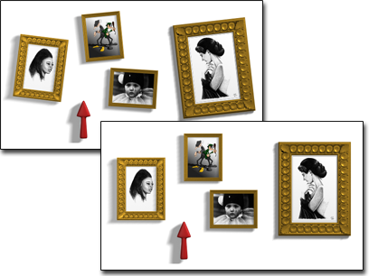 Aligning multiple objects to the arrow object (each photo is adjusted in a different correction)