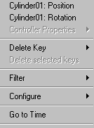 To display a list of all keyed values for a key on the track bar, right-click the key. Choose a key type from the right-click menu to display its key properties dialog. Delete keys and filter the track bar display using options on the right-click menu.