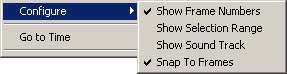 Right-click anywhere on the track bar, place the cursor over Filter in the track bar menu to display the Filter submenu, then choose filter settings. The settings determine which keys appear on the track bar.