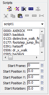 Use the Position, Rotation, and Start Frame controls to position the entire animation. If you are editing the script for a character in a scene with other objects or characters, use these controls to position the animation relative to the rest of the scene.