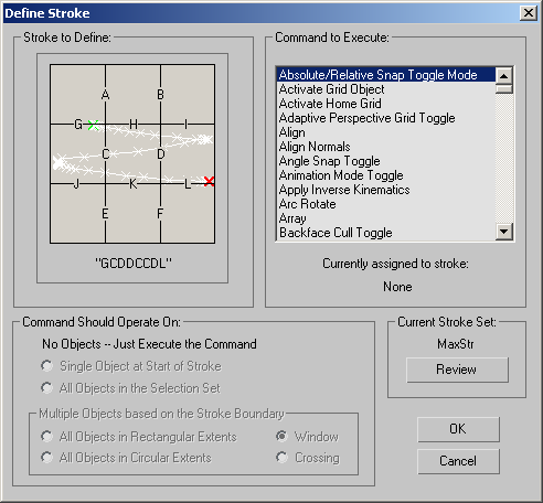 The Command Should Operate On group of options is important. If the command applies to selections, leave this option set to Single Object At Start Of Stroke, or change it to All Objects In The Selection Set. However, if the command doesn't apply to selections, such as Orbit or Activate Grid Object, change it to No Objects -- Just Execute The Command.