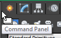 Docks the command panel, if necessary, and causes it to display as a thin vertical strip labeled “Command Panel.” To open the minimized command panel temporarily, position the mouse cursor over this thin strip.